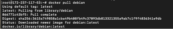 This simply tells Docker to pull the detain image and because we didn’t specifically anything else, it pulls the latest image … this is what it looks like in my terminal: